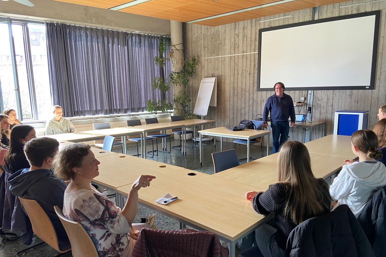 Prof. Bastian Rapp erklärte den 16 Teilnehmenden aus verschiedenen Gymnasien, darunter Neuenburg, Bad Krozingen, Theodor-Heuss-Gymnasium und St. Ursula Gymnasium in Freiburg, zu Beginn, was ein Reinraum ist und wie er funktioniert. In einem Reinraum werden Luft und andere Bedingungen sehr präzise kontrolliert werden, um Verunreinigungen zu vermeiden – eine wichtige Voraussetzung für die Herstellung empfindlicher Teile wie Halbleiter.