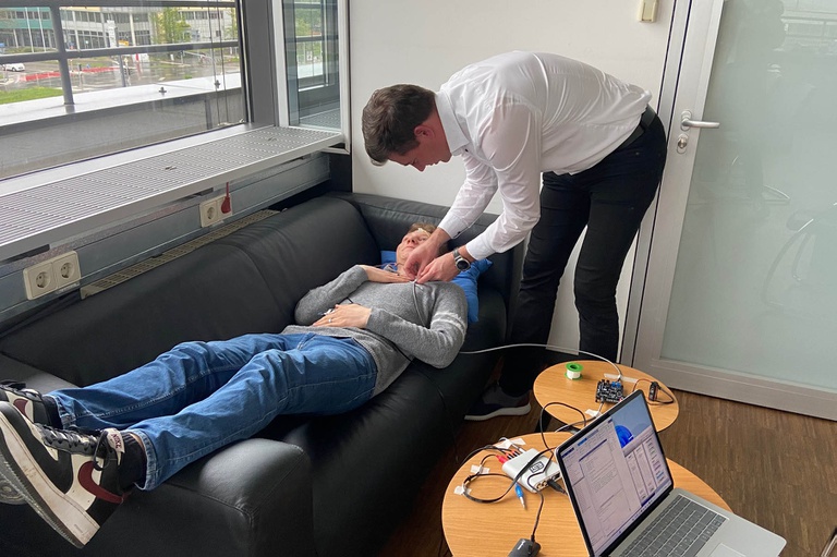 Einige Schüler*innen hatten die Möglichkeit, die Antworten ihres auditorischen Hirnstamms auf akustische Klicks messen zu lassen. Das hierfür verwendete Messsystem wurde durch eine Studentin des Studiengangs Embedded Systems Engineering im Rahmen ihrer HiWi-Tätigkeit entwickelt und zeigt, wie praxisnah an der Technischen Fakultät studiert und gearbeitet wird.